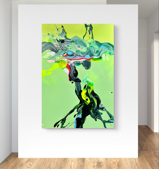 „Zitronenfalter" 100 x 70 cm, Fluid Art auf Leinwand; verfügbar
